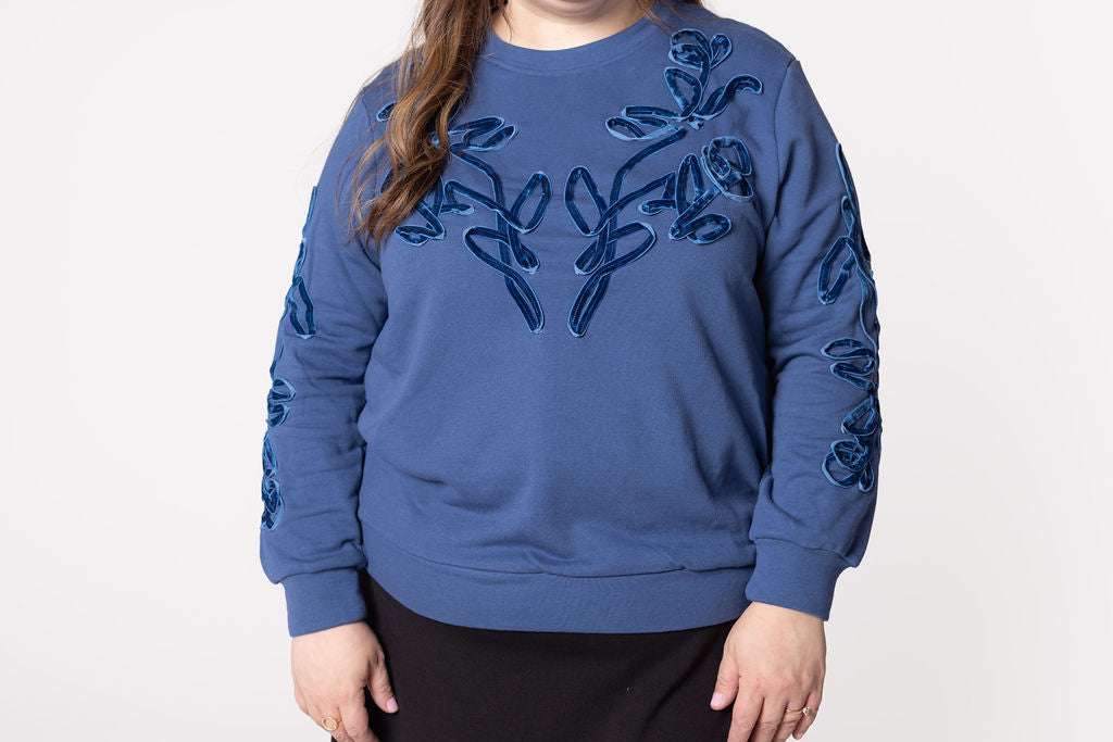 This one-of-a-kind top turns a simple plus size sweatshirt into a wearable work of art. The Concept {Top} is casual comfort, elevated.